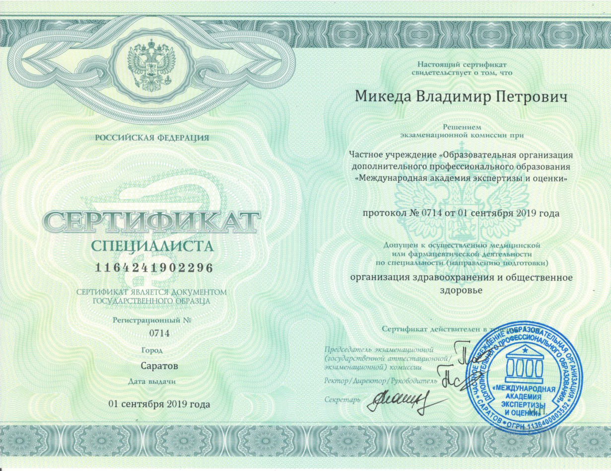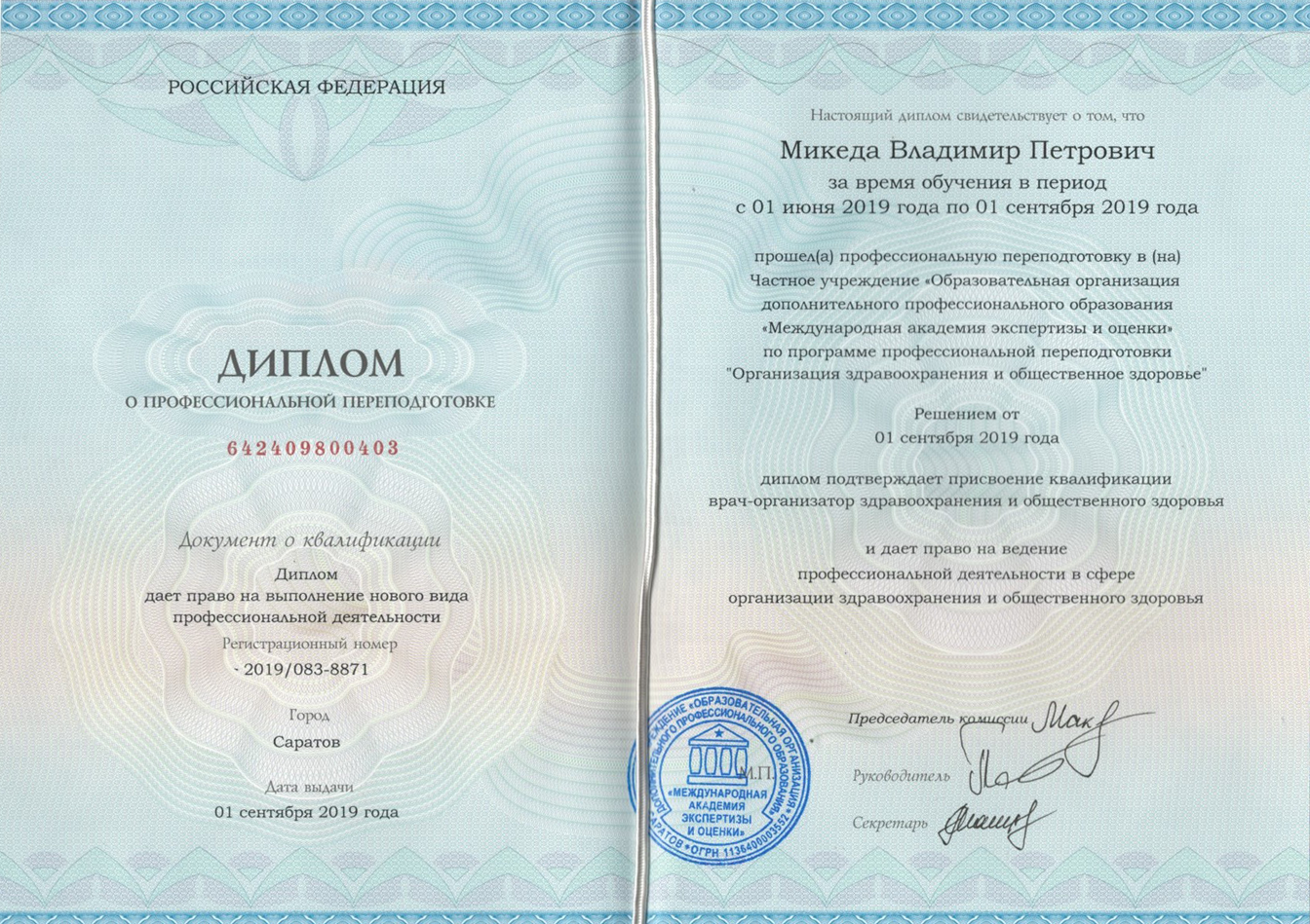 «Диплом и Сертификат о специализации Организация здравоохранения и общественное здоровья»